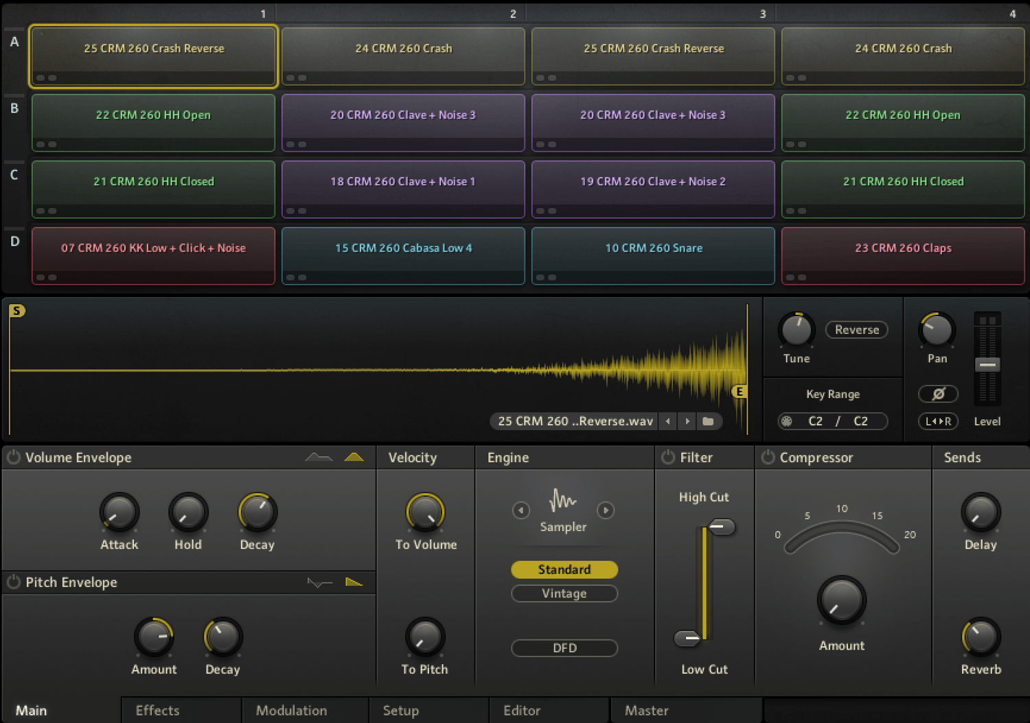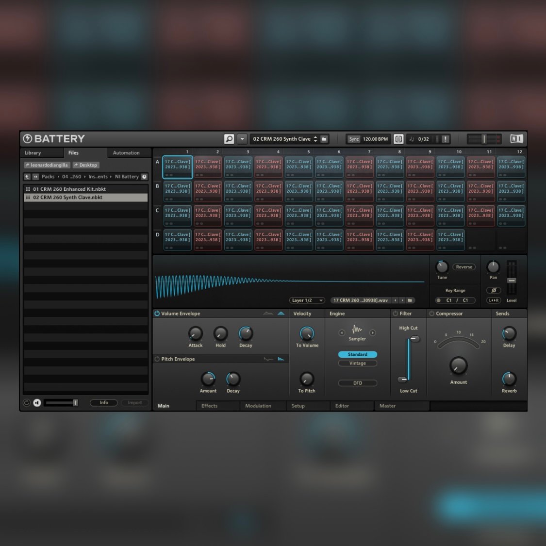 - Synth Clave: a "ready to use" all new synth created with original Cort Crm 260 sounds, with attack, release, cutoff, noise volume, reverb and delay parameters mapped in Macro.