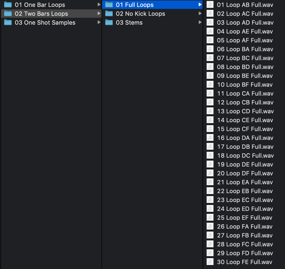 - Folder 1: All Samples (Loops, Stems, One Shots)